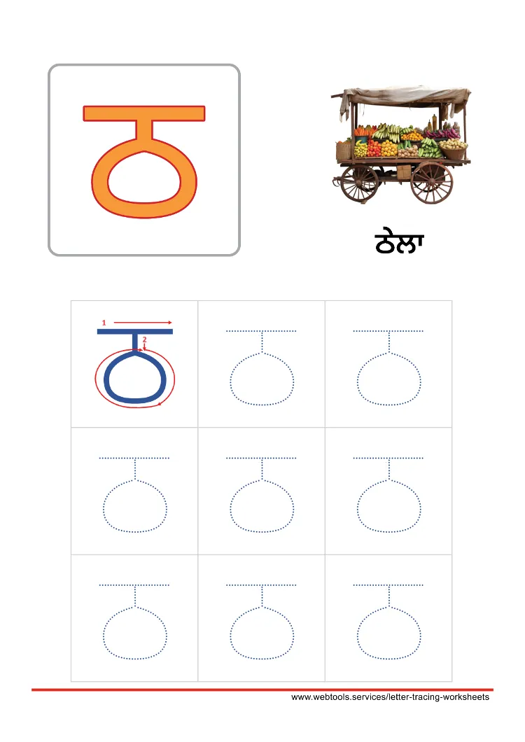 Alphabet ਠ | THATHAA Tracing WorksheetPunjabi Alphabet ਠ | THATHAA Tracing Worksheet